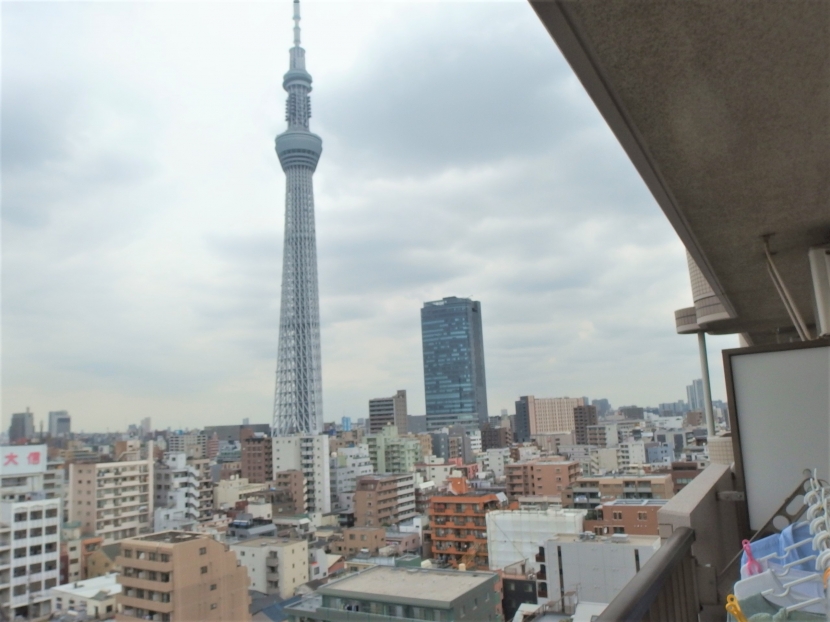 *13階南西角部屋。スカイツリー・隅田川花火大会が望めます